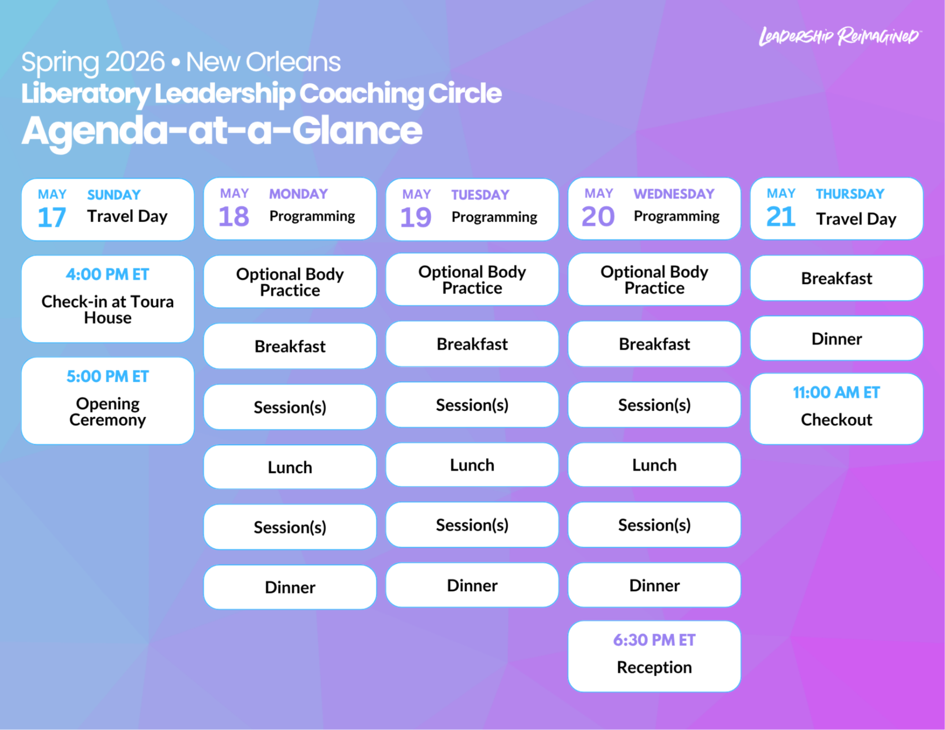 📅 Program Dates: May 18–20, 2026